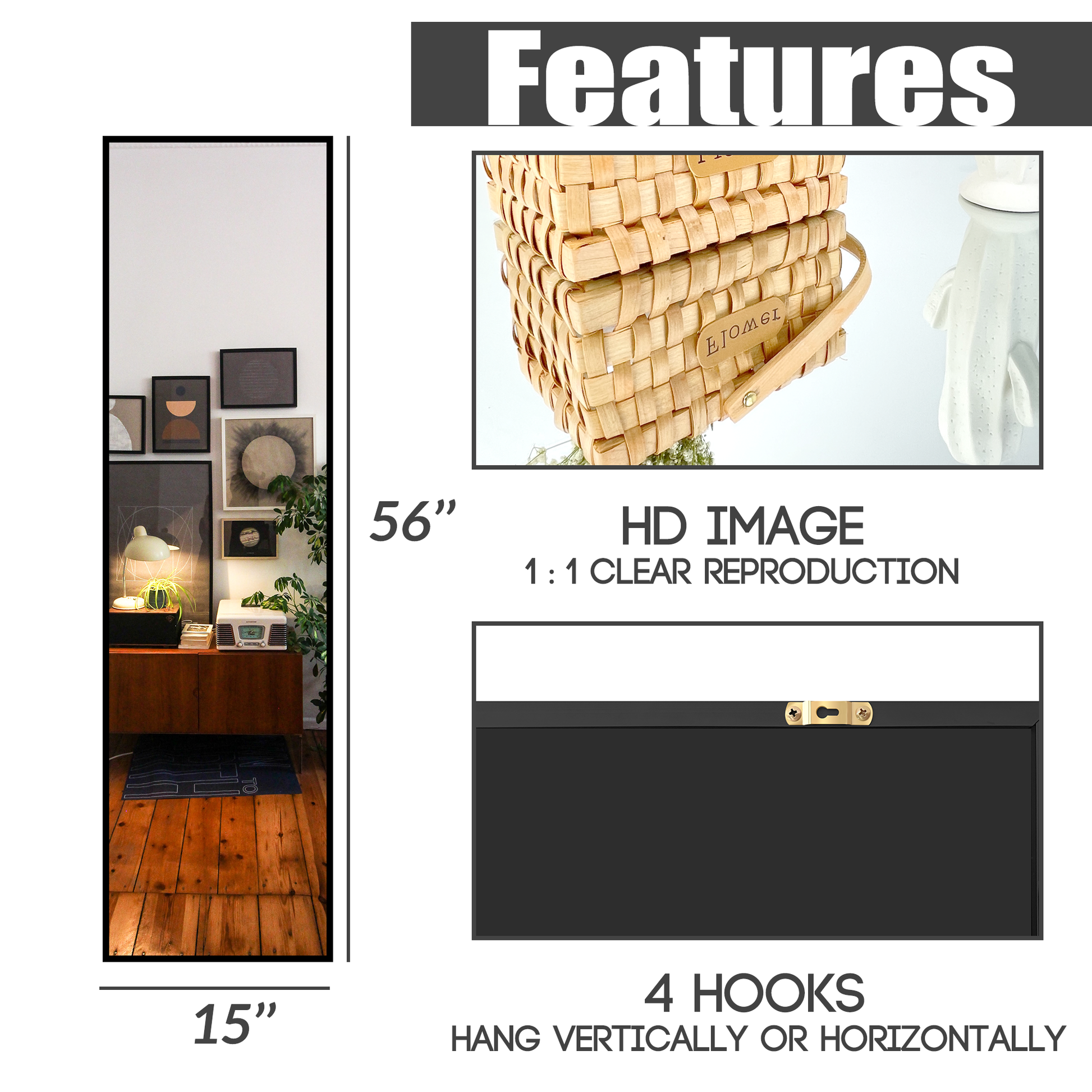 Standing Mirror Full Length Mirror,Large Floor Mirror with Aluminium Frame for Door Bedroom Bathroom Living Room (56x15-Black)